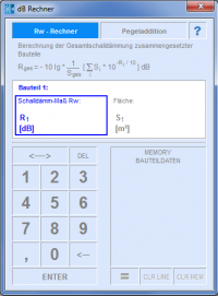 Neu ist ebenfalls der dB-Rechner, mit dem die resultierende Gesamtschalldämmung zusammengesetzter Bauteile berechnet und Pegel addiert werden können.