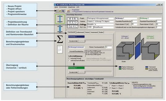 Häufig geschieht dies erst im Rahmen der statischen und bauphysikalischen Berechnungen durch Fachingenieure. Der KS-Schallschutzrechner bietet hier dem Planer eine schnelle und einfache Möglichkeit, den Schallschutz bereits im Planungsstadium rechtssicher zu untersuchen. Dies verhindert wiederum Nachbesserungen in der Ausführungsplanung, die u. U. mit höheren Kosten verbunden sind (z. B. Wohnflächenverluste aufgrund dickerer Wände).